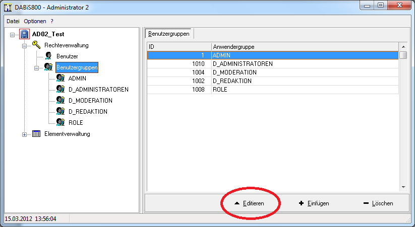 Wählen sie die Gruppe aus deren Namen sie ändern möchten und betätigen sie die Schaltfläche Editieren.
