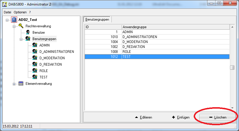 << Klicken Sie hier um das Inhaltsverzeichnis anzuzeigen >> Navigation: Anleitungen > Rechteverwaltung > Gruppe löschen |