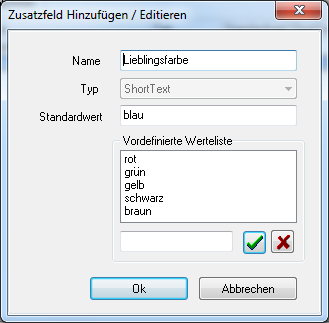 Die vordefinierte Werteliste kann jederzeit beliebig bearbeitet werden.